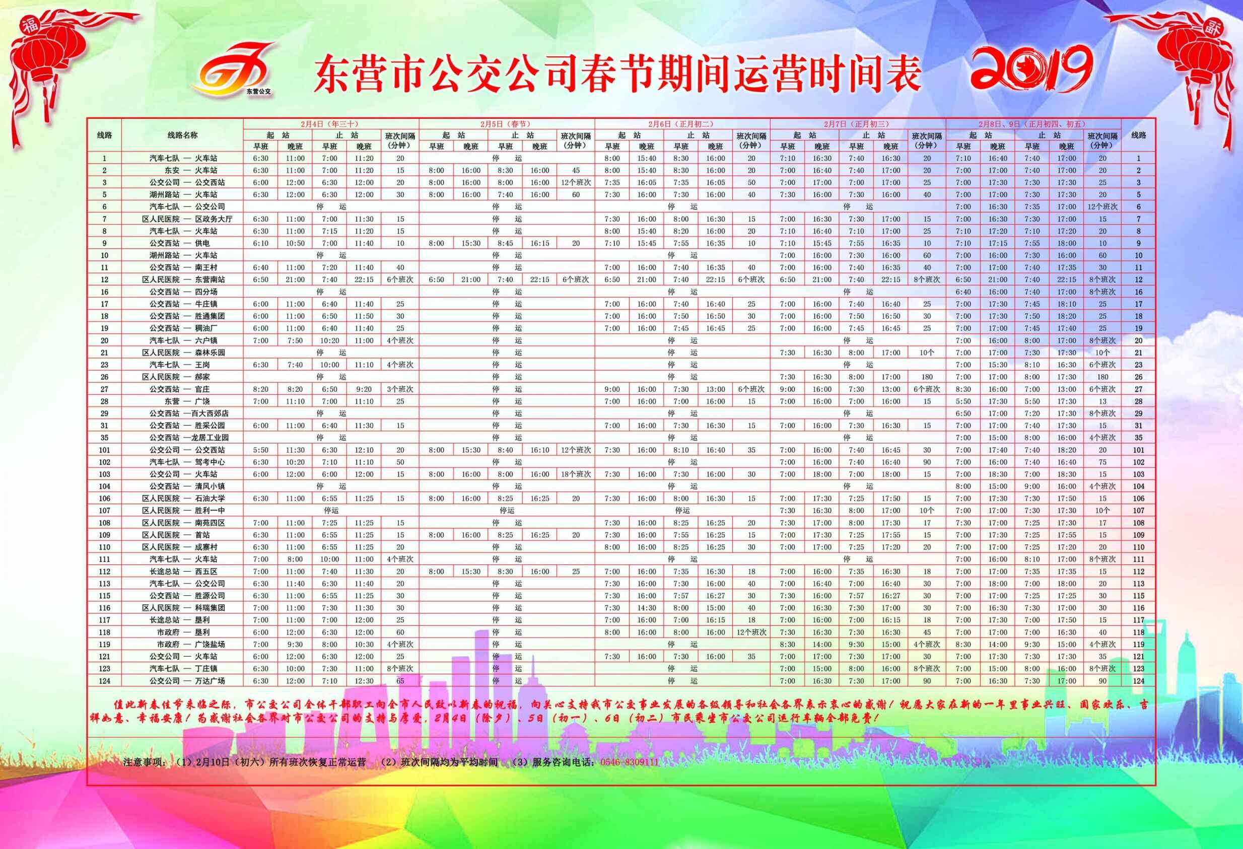 2019年東營市公交公司春節(jié)期間運營時刻表
