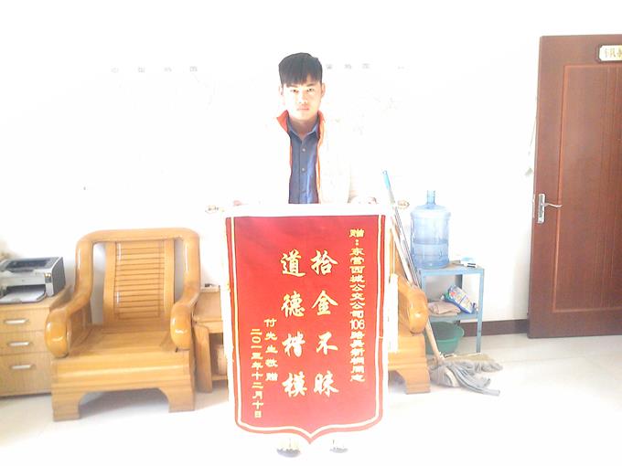 12月15日,家住南一路桐鳳小區(qū)的付玉先生拿著一面寫有“拾金不昧、道德楷?!钡腻\旗來(lái)到市公交公司汽車四隊(duì),感謝車隊(duì)駕駛員吳新桐師傅拾金不昧的高尚品德。