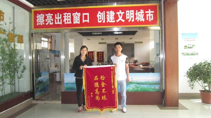5月1日晚,家住史口鎮(zhèn)的郭峰先生在西城淄博路就餐后搭乘魯ET1980號出租車返回東城東三路附近下車,下車時不慎將隨身攜帶手提袋里的手機、銀行卡等證件及其他物品遺失在出租車上,因下車未取出租車發(fā)票,一時無法聯(lián)系司機。次日出租車駕駛員李懷芬將撿到的手提袋主動交給運營中心,后經(jīng)運營中心工作人員與乘客取得聯(lián)系,將出租車司機李懷芬撿到的手提袋物歸原主。事后乘客郭峰送來一面錦旗對出租車駕駛員李懷芬表示感謝。