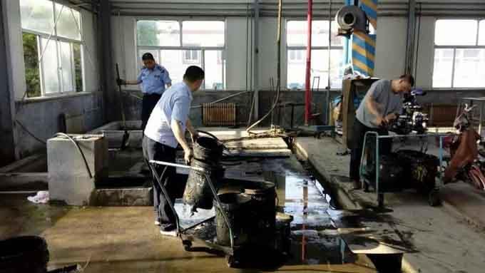 沉淀池的功能主要是將駕駛員涮洗拖把用過(guò)的廢水經(jīng)進(jìn)一步沉淀后再用作沖刷車場(chǎng)的公共廁所,這也是車隊(duì)厲行節(jié)儉、廢水二次利用的舉措之一。由于車輛保潔的需要,每天涮拖把不計(jì)其數(shù),致使沉淀池內(nèi)的水渾濁而散發(fā)著刺鼻的氣味,池底也積淀了半米之厚的黑色污泥,所以,每年度的開(kāi)春之后都得進(jìn)行一次清理。