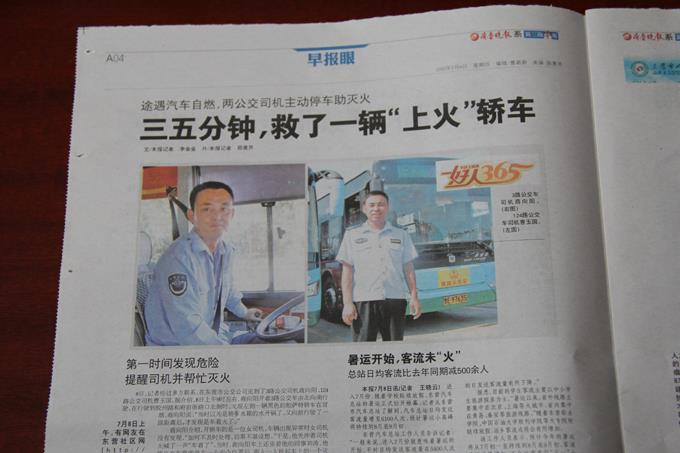 伸出援手的是公交公司3路車駕駛員商向陽和124路車駕駛員曹玉國(guó),兩人齊表示,只是恰好路過看到伸出援手而已,都是應(yīng)該做的。商向陽介紹:“自燃轎車的司機(jī)是女性,當(dāng)時(shí)她都沒有發(fā)現(xiàn)引擎蓋冒濃煙,公交車底盤高,我一扭頭就看到了,當(dāng)時(shí)事發(fā)鬧市區(qū),萬一燃燒起來引發(fā)爆炸之類的就太危險(xiǎn)了,于是我把公交車靠路邊停下,拎著滅火器就下來幫忙了?!辈苡駠?guó)當(dāng)時(shí)駕駛著124路公交車看到這一幕,也緊跟著拎著滅火器下車幫忙?;饟錅绾螅瑑晌凰緳C(jī)便回到公交車上開車離開了。