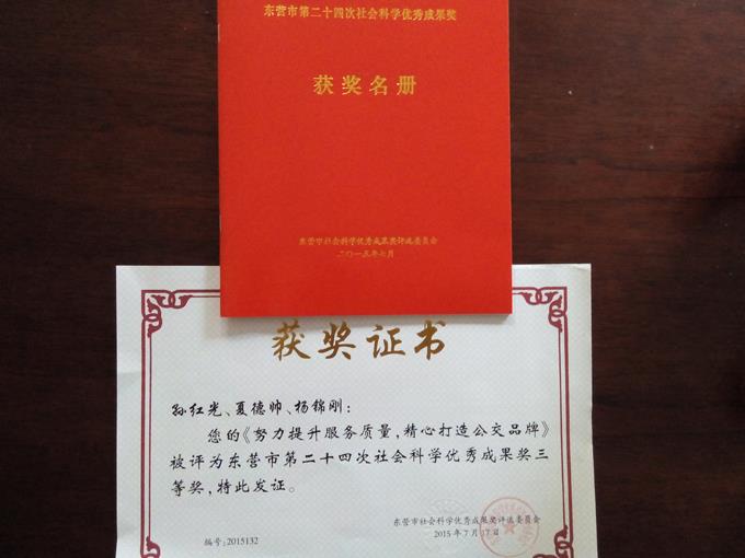 近日,東營市第二十四次社會科學優(yōu)秀成果獎評選結果揭曉,由市公交公司組織申報的《努力提升服務質量,精心打造公交品牌》論文喜獲東營市第二十四次社會科學優(yōu)秀成果獎三等獎。 據(jù)悉,東營市社會科學優(yōu)秀成果獎是市委、市政府設立的全市社會科學研究最高成果獎,是展示我市社科研究水平、研究成果、研究力量的重要平臺。此次評獎特設一等獎、二等獎、三等獎和優(yōu)秀獎,由東營市社會科學優(yōu)秀成果獎評選委員會代表市委、市政府向獲獎作者頒發(fā)獲獎證書、獎金。