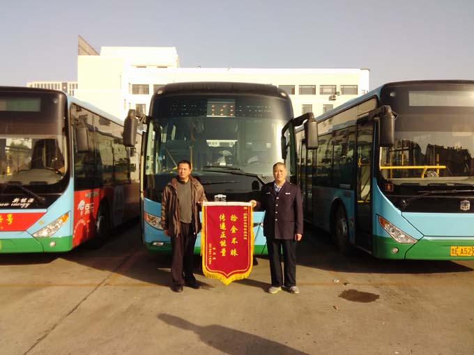 11月8日上午,北京百利達(dá)防腐工程有限公司的黃先生拿著一面寫有“拾金不昧,傳遞正能量”的錦旗來到市公交公司汽車一隊,感謝171路駕駛員王玉斌師傅拾金不昧的高尚品德。據(jù)車隊了解得知,11月6日晚22:10時左右,黃先生乘坐王玉斌師傅駕駛的171路公交車,下車到工地附近旅館后發(fā)現(xiàn)錢包不見了,錢包內(nèi)有2400元現(xiàn)金、身份證和駕駛證等物品。第二天一早,黃先生抱著試試看的想法來到市公交公司汽車一隊駐地,詢問得知駕駛員王玉斌師傅在停車后檢查車輛時,發(fā)現(xiàn)了一個裝有2400元現(xiàn)金、身份證和駕駛證等物品的錢包。