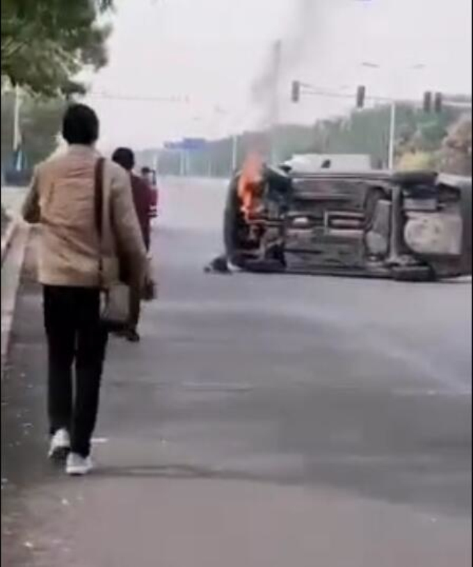 今天中午十二點(diǎn)半左右,在青島路上,一輛小轎車不知什么原因發(fā)生了側(cè)翻起火,火焰不斷向上躥,冒著濃濃黑煙。更令人揪心的是,當(dāng)時(shí)車內(nèi)還有三個(gè)人(據(jù)說(shuō)是一家三口)被困車中沒(méi)能出來(lái),隨時(shí)都有被大火吞噬的危險(xiǎn)。