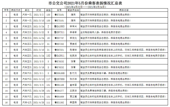 廣大駕駛員要以受到表揚(yáng)的同志為榜樣,愛崗敬業(yè)、無私奉獻(xiàn),為樹立和維護(hù)公司的外在形象作出貢獻(xiàn)。同時(shí)也希望受到表揚(yáng)的同志戒驕戒躁,再接再厲,發(fā)揮模范作用,繼續(xù)為公司的服務(wù)提升工作貢獻(xiàn)力量。