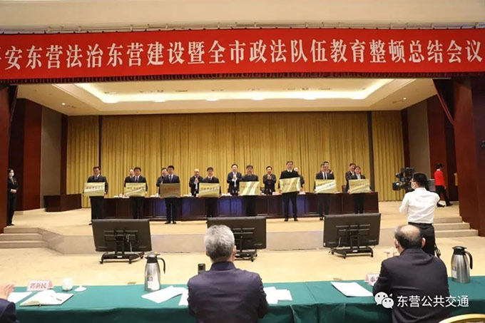 2022年3月3日下午,平安東營法治東營建設(shè)暨全市政法隊(duì)伍教育整頓總結(jié)會(huì)議召開,會(huì)議深入學(xué)習(xí)貫徹習(xí)近平法治思想和習(xí)近平總書記重要指示要求,認(rèn)真貫徹落實(shí)中央和省委有關(guān)會(huì)議精神,表揚(yáng)獎(jiǎng)勵(lì)先進(jìn),總結(jié)全市政法隊(duì)伍教育整頓工作,對(duì)深入推進(jìn)平安東營、法治東營建設(shè)進(jìn)行安排部署。市委書記楊國強(qiáng)出席會(huì)議并講話,市委副書記、市長陳必昌主持,市委副書記、政法委書記孫早軍出席。
