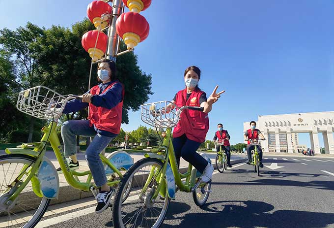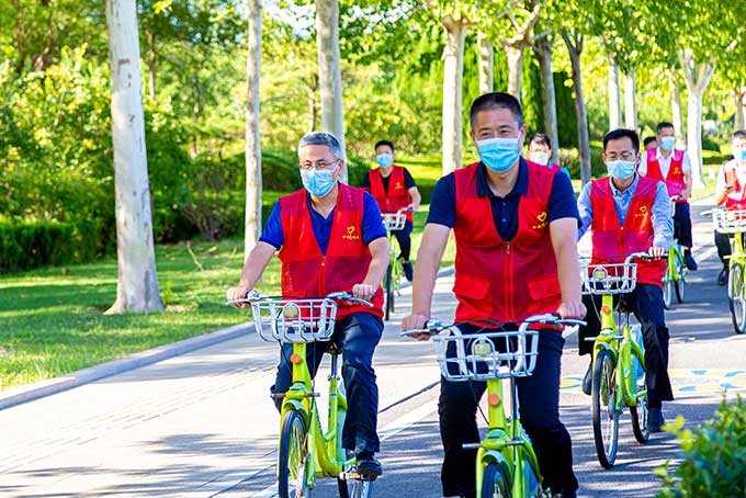 近日,交通運(yùn)輸部、公安部、國家機(jī)關(guān)事務(wù)管理局、中華全國總工會(huì)等聯(lián)合印發(fā)通知,定于9月份開展2022年綠色出行宣傳月,9月19日至25日開展公交出行宣傳周活動(dòng)。本次活動(dòng)以“綠色出行,你我同行”為主題。19日下午,一群身著紅色志愿馬甲的志愿者們從市政廣場新世紀(jì)門出發(fā),沿勝利大街一路向南,經(jīng)過“最美一條街”濰河路,最終從膠州路返回市公交公司,志愿者們通過這一路的騎行方式,做了綠色出行的踐行者和傳播者。
