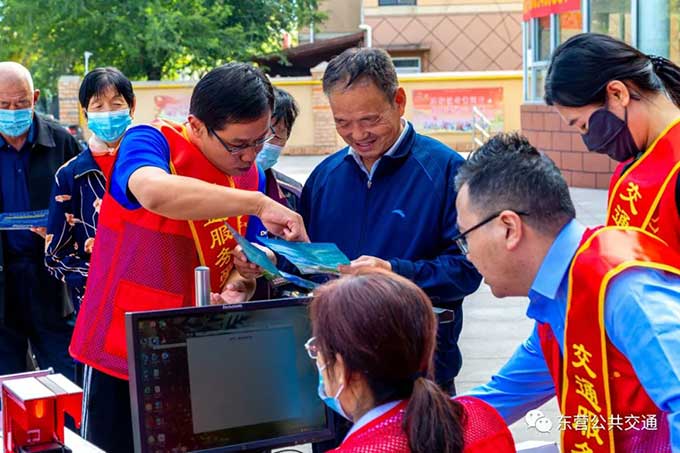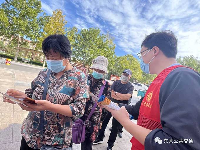 “我今年正好滿60周歲,從社區(qū)了解到有這個活動,一大早就喊著老伴來排隊了?!鄙鐓^(qū)李奶奶在收到通知后,就約了街坊鄰居一起,還按要求帶好了證件。明月社區(qū)的李大爺雖然已經(jīng)退休,但仍然在發(fā)揮余熱,他經(jīng)常往返于廣饒和東營之間,“以前51路公交車還沒開通的時候,我們?nèi)V饒非常不方便,現(xiàn)在有了51路,去廣饒一個來小時就到了?!崩畲鬆攲τ跂|營公交駕駛員的服務(wù)也很滿意,他了解到按照疫情防控要求,上公交車要戴口罩并驗碼,“駕駛員還幫助我們老年人,服務(wù)也特別好。”