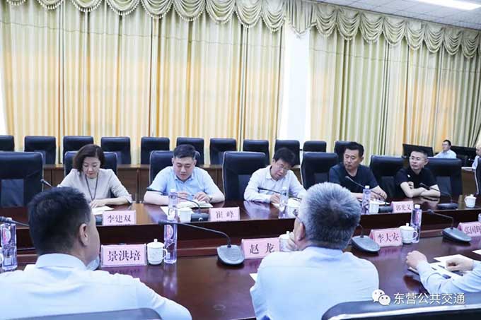 在座談交流會上,雙方互相介紹了基本情況,現(xiàn)場觀摩了東營智慧公交平臺,詳細了解了智慧公交平臺系統(tǒng)建設運營情況,圍繞公交信息化建設、運營服務、安全管理等方面工作進行了深入交流。座談交流結束后,利津縣交通運輸局一行赴汽車一隊進行了實地參觀,現(xiàn)場了解了車隊日常管理等情況。