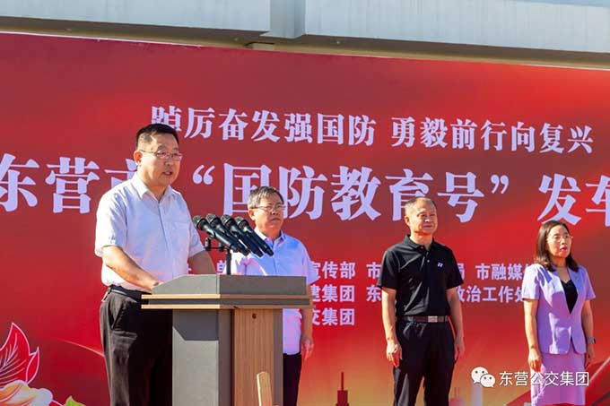 2023年9月14日上午,東營(yíng)市國(guó)防教育號(hào)發(fā)車儀式在市公交集團(tuán)隆重舉行。市委宣傳部副部長(zhǎng)邱家梅出席儀式并宣布發(fā)車,市交通運(yùn)輸局黨組成員、副局長(zhǎng)戴景鵬致辭,東營(yíng)軍分區(qū)政治工作處主任王志輝、市融媒體中心副主任趙國(guó)防、市城建集團(tuán)黨委副書記張文生、市公交集團(tuán)黨委書記趙龍等參加發(fā)車儀式。