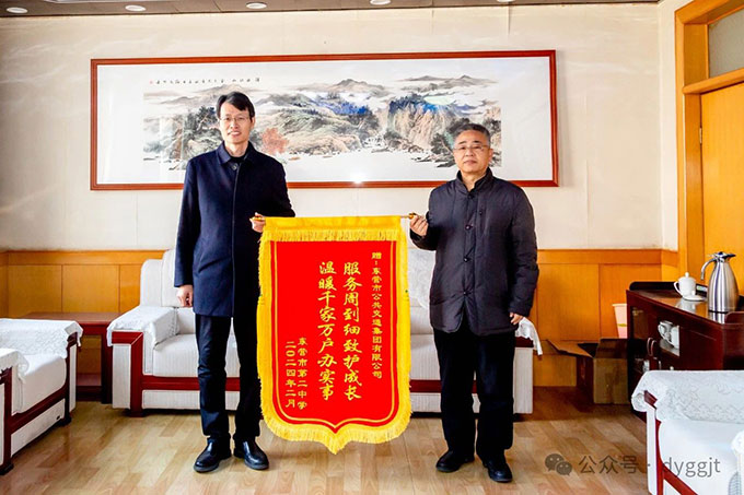 2024年3月6日上午,市二中黨委副書記、校長馬占武一行3人來到市公交集團,將一面寫有“服務(wù)周到細致護成長,溫暖千家萬戶辦實事” 的錦旗送到集團公司黨委書記趙龍同志手中,衷心感謝集團公司一直以來為市二中師生通學(xué)出行提供的安全、周到、細致的服務(wù)。