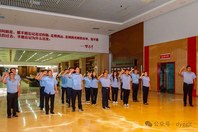隨后大家參觀了“崢嶸歲月 光輝歷程”——中共東營市地方組織建立100周年圖片展,進(jìn)一步了解東營市地方黨組織發(fā)展奮斗歷程。最后,全體黨員在黃河分館宣誓大廳面對(duì)黨旗莊嚴(yán)宣誓,重溫入黨誓詞。