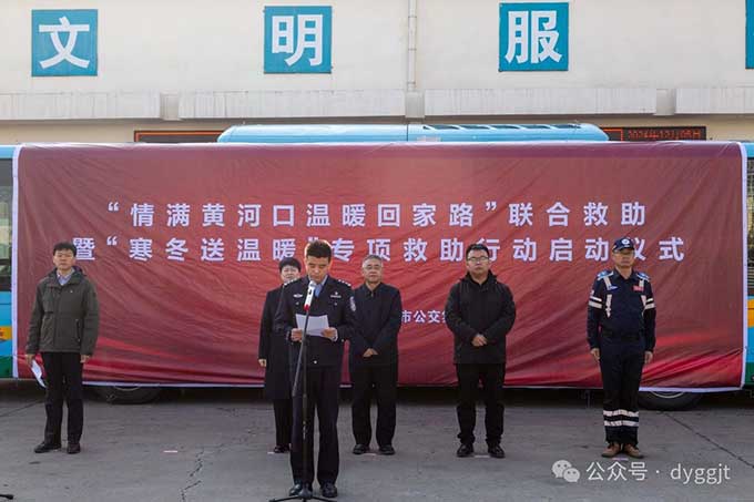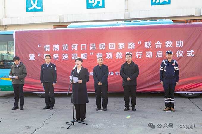 12月6日,市民政局聯(lián)合市公安局110指揮中心、市公交集團(tuán)共同舉辦“情滿黃河口 溫暖回家路”聯(lián)合救助暨“寒冬送溫暖”專項(xiàng)救助行動(dòng)啟動(dòng)儀式。市民政局副局長(zhǎng)王金娥,市公交集團(tuán)黨委書記趙龍,市公安局110指揮中心副主任劉文濤,以及各縣區(qū)、開(kāi)發(fā)區(qū)分管領(lǐng)導(dǎo)、流浪乞討工作負(fù)責(zé)同志,市社會(huì)救助服務(wù)中心全體工作人員和部分公交駕駛員等共100余人,參加了此次活動(dòng)。