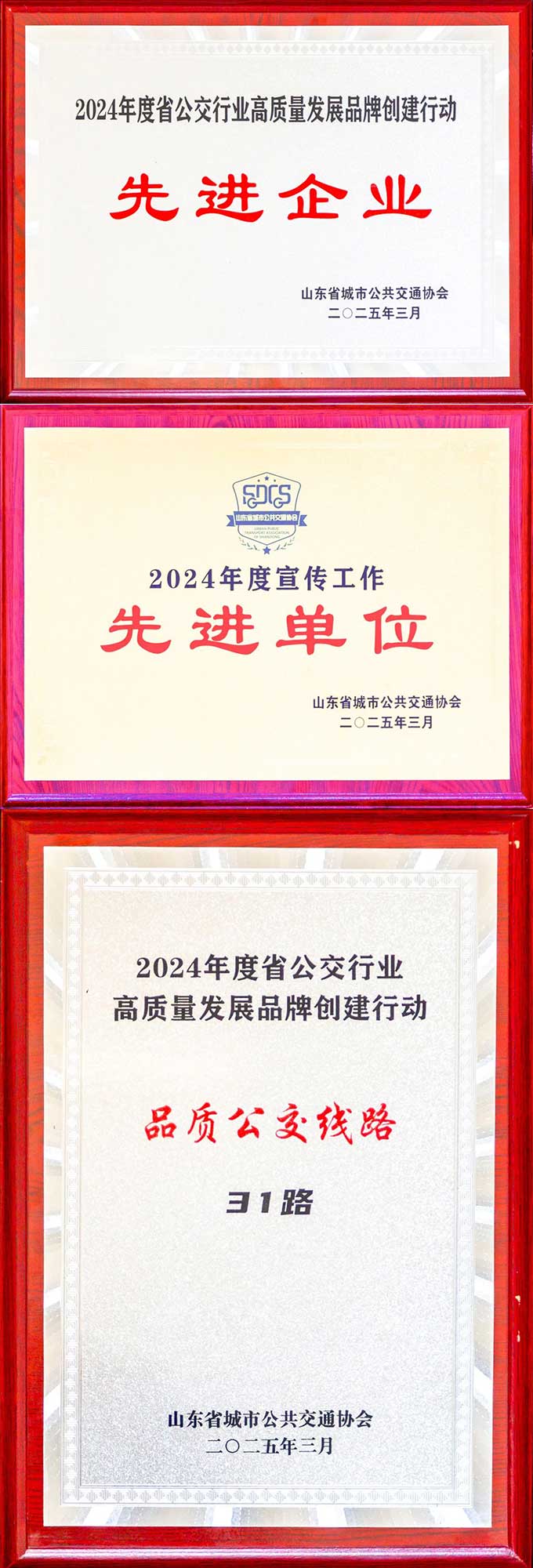 會上,東營市公交集團獲得2024年度全省公交行業(yè)宣傳工作先進單位、全省公交行業(yè)高質(zhì)量發(fā)展品牌創(chuàng)建行動先進企業(yè)等榮譽稱號,汽車三隊31路公交線路被評為2024年度全省公交行業(yè)高質(zhì)量發(fā)展品牌創(chuàng)建行動“品質(zhì)公交線路”稱號,李衛(wèi)校、高新杰、劉忠華等3名同志被評為全省公交行業(yè)高質(zhì)量發(fā)展品牌創(chuàng)建行動“誠信服務(wù)標(biāo)兵”。