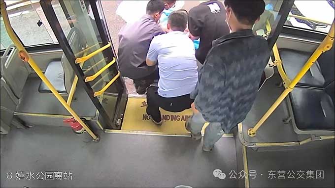 6月2日晚高峰,東營街頭車水馬龍。17時35分,8路公交駛離東趙大廈站,司機高希明從后視鏡發(fā)覺有些異常:一名剛換座的乘客低垂著頭,臉上也不正常,緊接著身體緩緩滑落在車廂地板上。