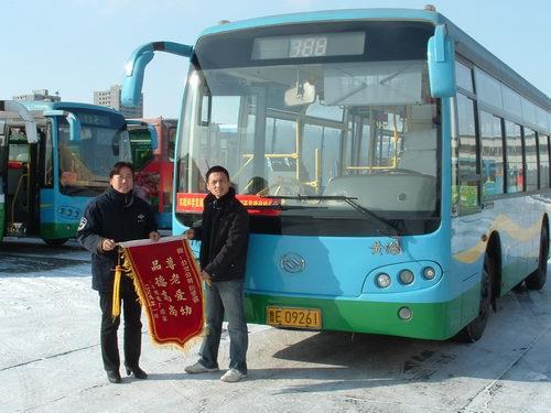 王樹懷的父親王科全老人和老伴都是勝利發(fā)電廠的退休職工,老家在東營村。閑暇之時(shí),二老經(jīng)常乘坐126路外出遛彎或購物,他們對126路駕駛員們的服務(wù)態(tài)度非常滿意,尤其是對魯E9261號(hào)駕駛員田惠霞的服務(wù)態(tài)度更是贊不絕口。由于二老行動(dòng)不便,有時(shí)還帶著孩子,田惠霞每次遇到二老乘車,都是拉好手剎起身下車攙扶二老上車,上車后遇到?jīng)]有座位的時(shí)候主動(dòng)用話筒幫助二老安排座位,田惠霞的真情服務(wù)感動(dòng)著二老,便委托兒子王樹懷先生給田惠霞送來了錦旗,聊表心意!