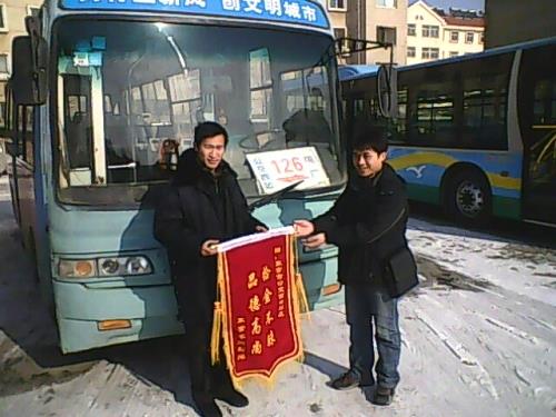 2010年1月6日,東營車網(wǎng)的劉先生手拿寫有“拾金不昧品德高尚”的錦旗,來到市公交公司汽車三隊,要求車隊領(lǐng)導(dǎo)大力表揚(yáng)126路駕駛員劉波。