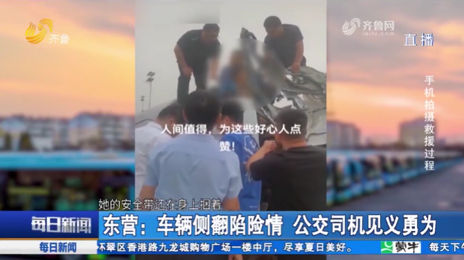 2024年6月6日,東營市公交集團(tuán)汽車一隊駕駛員蘇文海執(zhí)行51路公交運(yùn)行任務(wù),途經(jīng)廬山路與南一路交匯處時,蘇師傅發(fā)現(xiàn)一輛側(cè)翻的灑水車內(nèi)有一名傷者正在揮手求救,由于事發(fā)路段處于封閉快速車道,蘇師傅趕忙將公交車??吭诼愤叞踩恢煤笙蜍噧?nèi)乘客高喊:“不好,有人受傷了,咱們快去救人吧!” 車上的乘客在蘇師傅的帶頭下,一起下車奔向事故車輛,有個女乘客及時撥打了報警求救電話。